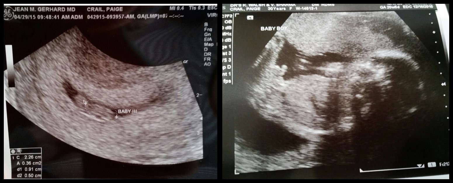 First, no pregnancy post would be complete without a few sonograms! On the left is my very first sonogram, when our baby was just a little blob. And next to it we see what a difference a few months can make at our 20 Week appointment when we find out we're having a little boy!