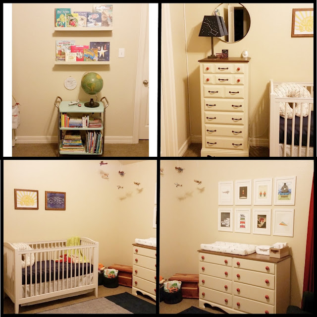 And last but not least, there was plenty of nesting. Most notably, we put together this little air and space themed nursery, complete with rocket ships, stars, and airplanes hanging from the ceiling! We put in the finishing touches about a week before our little guy's arrival!